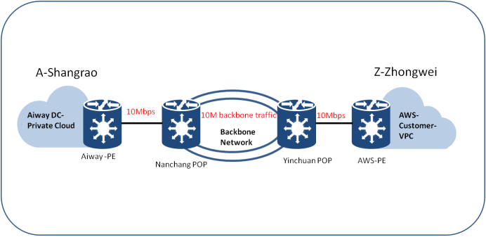 爱驰汽车通过爱游戏网络10M专线,由上饶直连到AWS POP点(AWS中国宁夏IDC),申请使用AWS VPC资源。